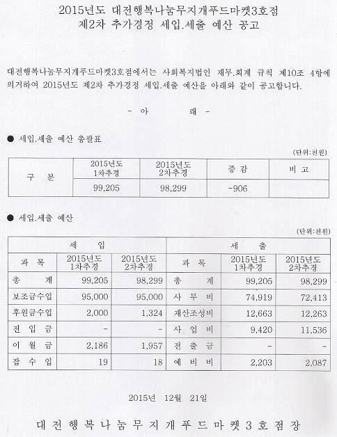 19-03-28 11:24 대전행복나눔무지개푸드마켓3호점 2015년도 제2차 추가경정 세입.세출 예산 공고 페이지 정보 작성자 성우보육원 댓글 0건 조회 5,068회 본문 대전행복나눔무지개푸드마켓3호점 2015년도 제2차 추가경정 세입.세출 예산 공고 목록 댓글목록 댓글목록 등록된 댓글이 없습니다.