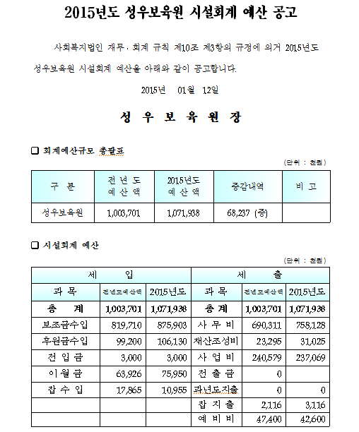 19-03-28 11:04 2015년 시설회계 예산 공고 페이지 정보 작성자 성우보육원 댓글 0건 조회 5,328회 본문 2015년 시설회계 예산 공고 목록 댓글목록 댓글목록 등록된 댓글이 없습니다.