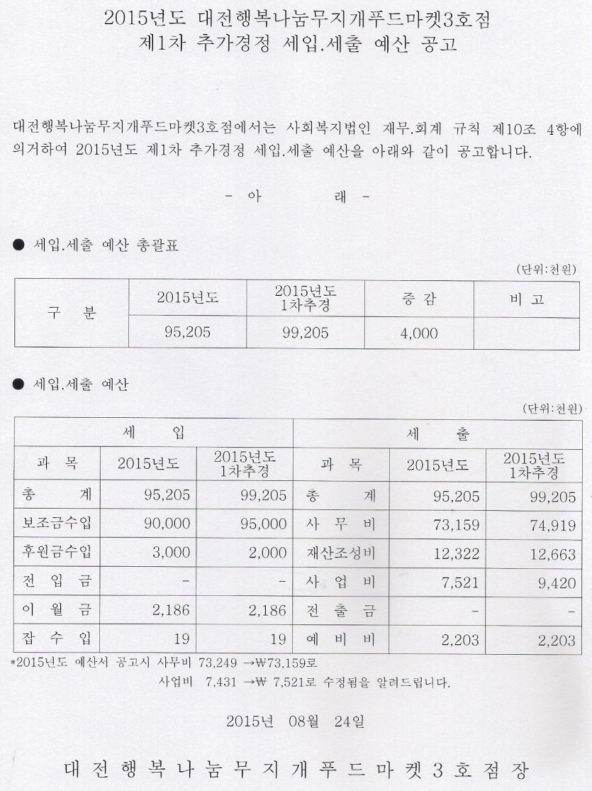19-03-28 11:22 대전행복나눔무지개푸드마켓 2015년 제1차 추가경정 세입.세출 예산서 페이지 정보 작성자 성우보육원 댓글 0건 조회 5,636회 본문 대전행복나눔무지개푸드마켓 2015년 제1차 추가경정 세입.세출 예산서 목록 댓글목록 댓글목록 등록된 댓글이 없습니다.