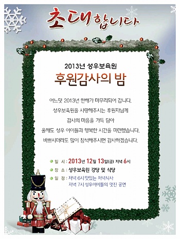 2013년 성우보육원 후원감사의 밤에 여러분을 초대합니다.