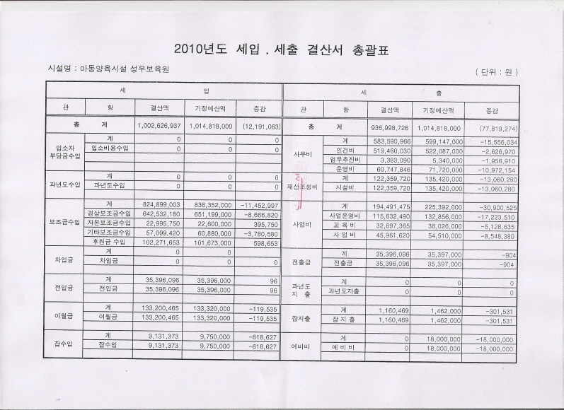 19-03-28 10:50 2010년도 세입세출 결산 총괄표 페이지 정보 작성자 성우보육원 댓글 0건 조회 5,634회 본문 2010년 세입세출 결산 총괄표 목록 댓글목록 댓글목록 등록된 댓글이 없습니다.