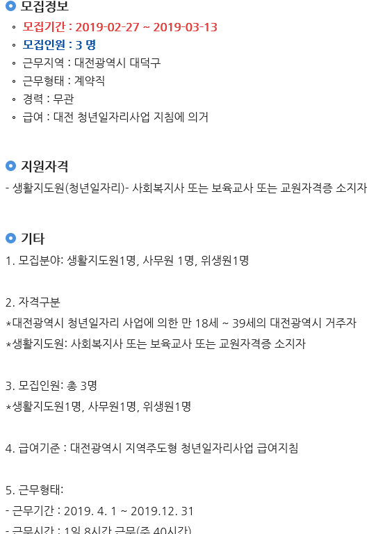 19-02-27 11:49 (공고) 대전청년일자리사업-생활지도원, 사무원, 위생원 모집