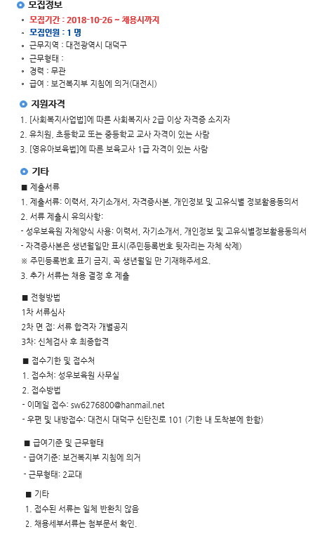 19-03-28 11:47 (재공고)생활지도원 모집 페이지 정보 작성자 성우보육원 댓글 0건 조회 5,219회 본문 (재공고)생활지도원 모집 목록 댓글목록 댓글목록 등록된 댓글이 없습니다.