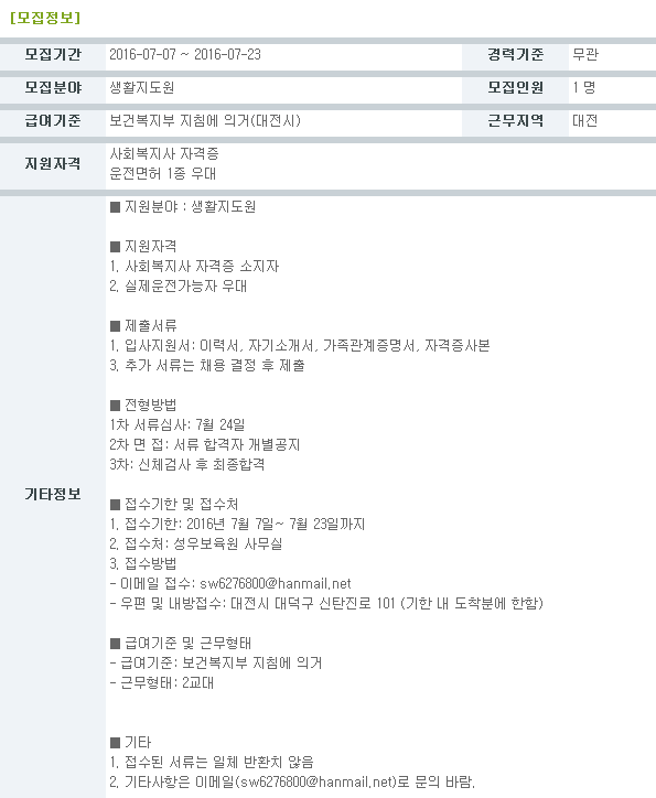19-03-28 11:31 (채용공고)생활지도원 모집 페이지 정보 작성자 성우보육원 댓글 0건 조회 5,744회 본문 생활지도원 모집 목록 댓글목록 댓글목록 등록된 댓글이 없습니다.