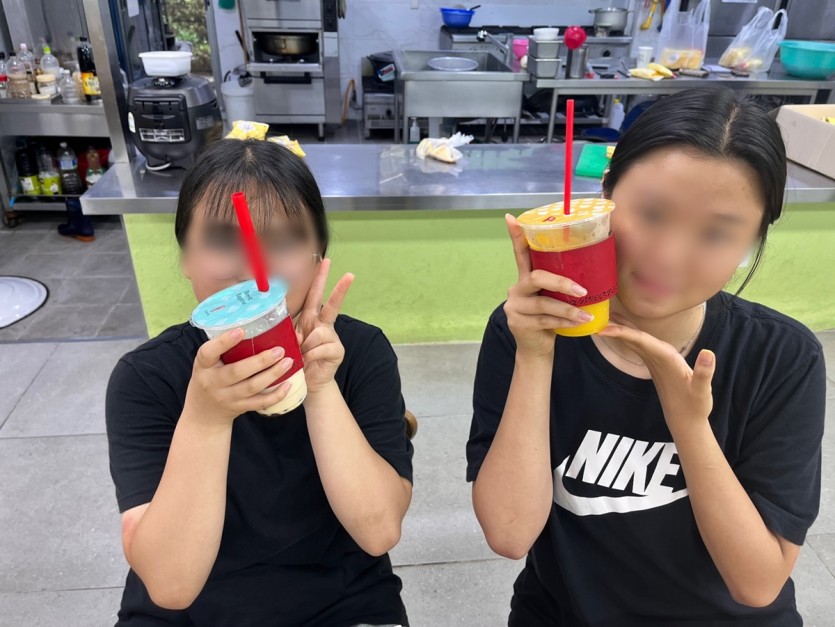 아동들은 더운 날씨에 공차 음료 마시며 더위를 날려버릴 수 있었답니다