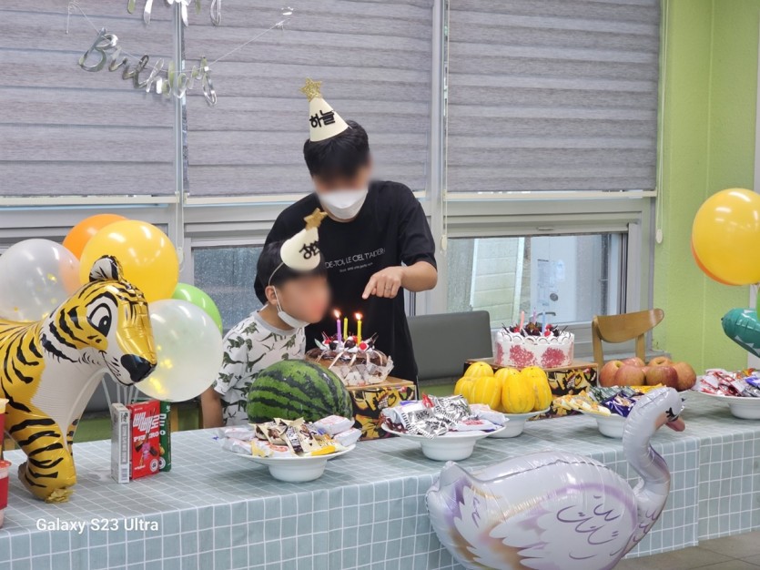 ’마이리틀파티‘에서 후원해 주신 귀여운 동물 캐릭터 풍선 덕분에 아동들 생일상을