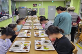 한창 뛰어 놀고 먹은 점심식사! 메뉴는 쌈밥을 먹었고 봉사자 분들과 성우 아이들은 서로를 먹여주며 맛있게 점심식사를 마쳤습니다
