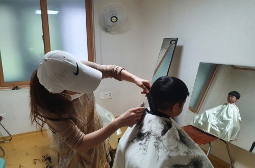트윈스미용실에서 미용봉사 진행해주고 가셨습니다! :-)