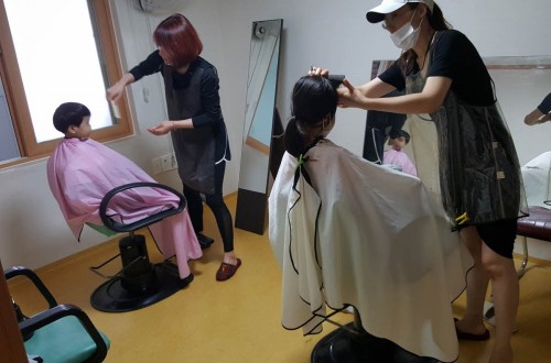 트윈스 미용실 봉사자분들 오셔서 미용봉사 해주셨습니다♥