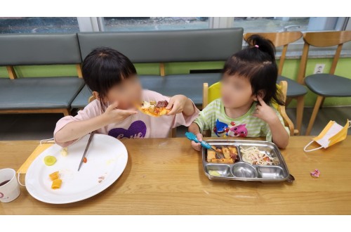 한솥도시락에서 아이들에게 맛있는 점심을 후원해 주셨습니다^^부드러운 닭갈비와 듬뿍 들어간…