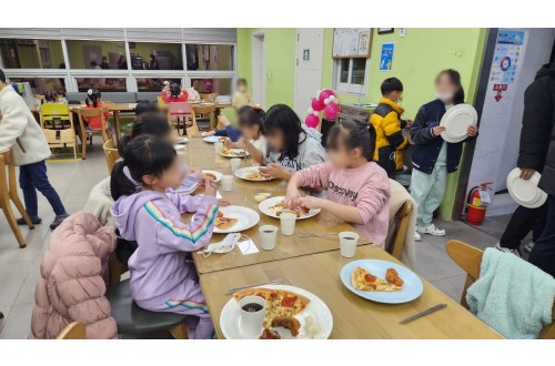마녀떡볶이에서 떡볶이 후원해주셨습니다~아동들 입맛에 맞는 로제 떡볶이를 먹으며 …