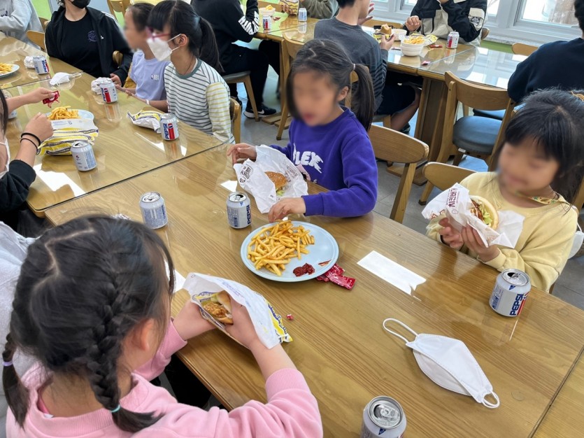 또한, 아동들 점심 식사로 롯데리아 햄버거 세트를 후원해주셨습니다~!!