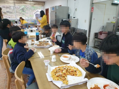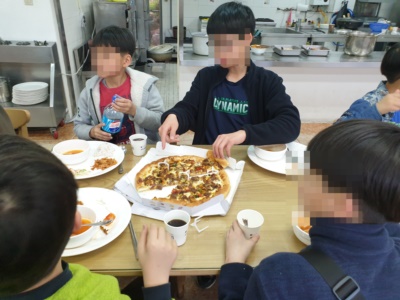 피자를 후원해주신 덕분에 아동들이 배부르게 식사 할 수 있었습니다.