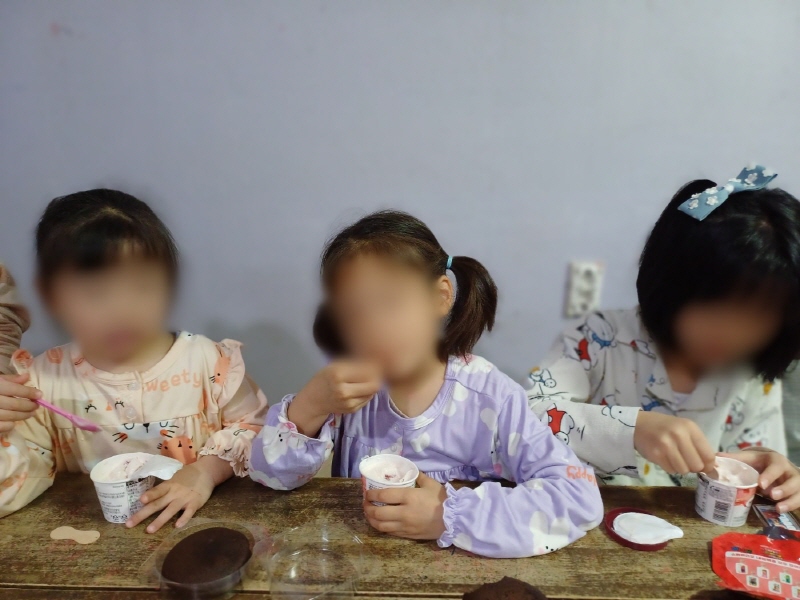 아이들이 즐겁게 대화를 나누며, 간식을 배부르게 먹을 수 있었습니다!!