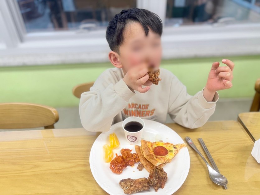 매니아푸드에서 후원해주신 아이들이 너무 나도 좋아하는 피자와 치킨의 향기였답니다.