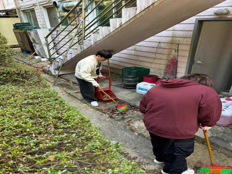 분리수거를 마치고 구석에 떨어진 낙옆까지도 꼼꼼하게 청소해주셔서