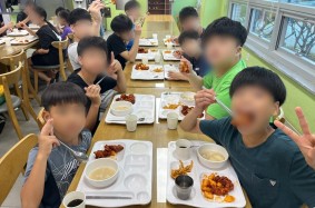 전복만세(만년동점) 사장님께서 성우 아동들을 위해 푸짐하게 닭강정과 …