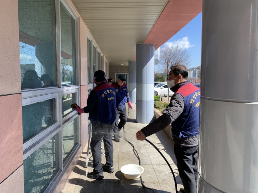 재향군인회 남성 봉사자분들께서 관리동 유리창 물청소를 정성껏 진행해 주셨습니다.